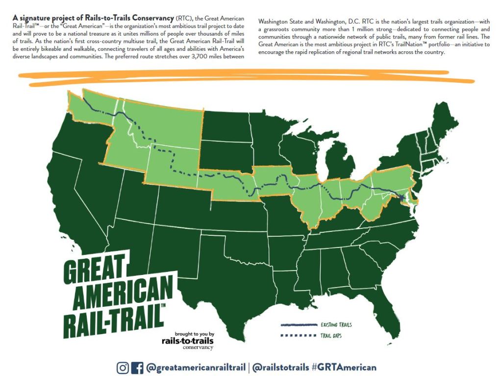 While the above-described vision has roots that are about 60 years old, much of the infrastructure upon which the vision is based was constructed more than a century ago. The vision is largely based on re-purposing infrastructure that remained after this nation abandoned its railroads in the 1960’s and 1970’s. An abundance of empty corridors were left in the wake of the decline of railroads. The potential to convert these corridors into greenways – paths that could be used for non-motorized transport such as bicycling – was quickly recognized by individuals and small groups across the country. According to Peter Harnik, a leading visionary and co-architect of the vision who authored a history of the movement (The Making of America’s Active Transportation Network, University of Nebraska Press, 2021), bicyclists provided “muscle” for early efforts to convert rail corridors to paths for pedestrians and non-motorized vehicles. According to Harnik, these “simple ideas…snuck through like magic.”